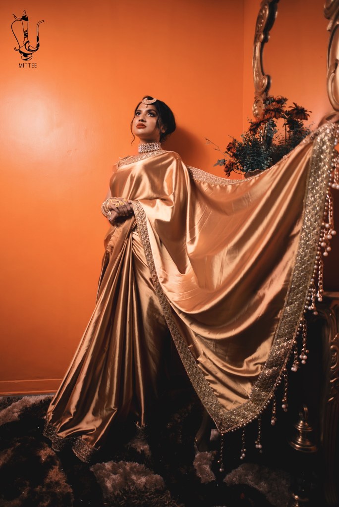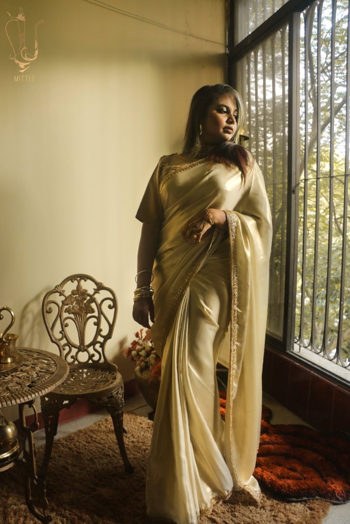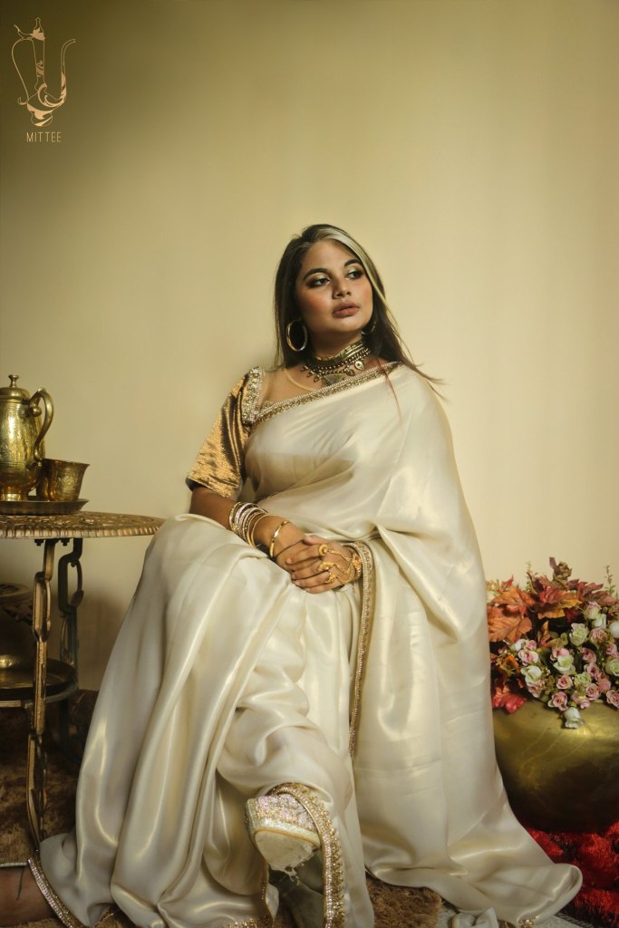 Wear this gorgeous metallic gold-silver saree and put everyone under your spell.